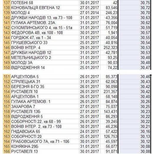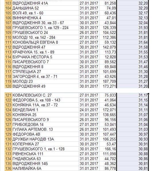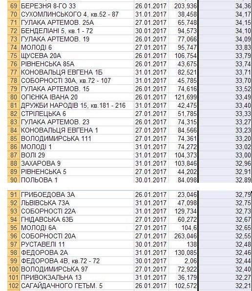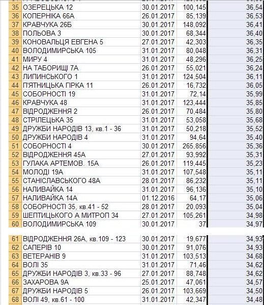 Будинків обладнаних лічильниками є не 166, а 304. Коментар заступника директора з вашої статті :"Загалом ДКП «Луцьктепло» надає послуги у 789-ти житлових будинках. З них лише 304 оснащені засобами обліку ". Цікаво, яка ціна за кв. метр тих 138 будинків, які не ввійшли в таблицю, ціна там явно менша за середньомісячний норматив
