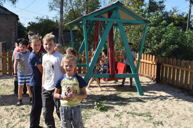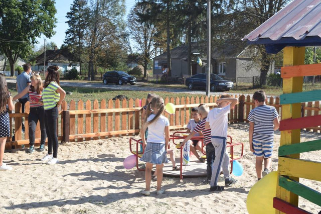 Дитячий майданчик розмістили біля сільського будинку культури. Небайдужі батьки дітлахів встановили конструкції, навозили пісок, обвели майданчик дерев’яним тином, аби малеча безпечно проводила час. Сільський голова Юрій Самолюк власноручно доєднався до облаштування дитячої зони, бо йому небайдуже, як живе село і його жителі. Він уже третє скликання очолює громаду, повідомляє прес-служба УКРОПу.