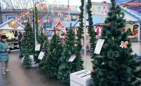 У центрі Сімферополя, на новорічному ярмарку під будівлею музичного театру на проспекті Кірова, продаються штучні ялинки, виготовлені в Івано-Франківській області.