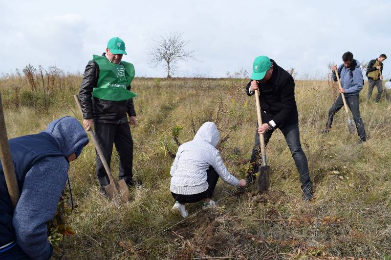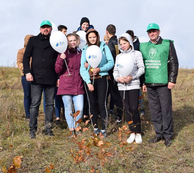 «Нещодавно наш односельчанин, учасник АТО Микола Денисюк, посадив у селі саджанці яблунь у формі тризубу. Тож ми вирішили підтримати таку гарну ініціативу і посадити поруч буки, які є символами загиблих воїнів, а не зброї.
