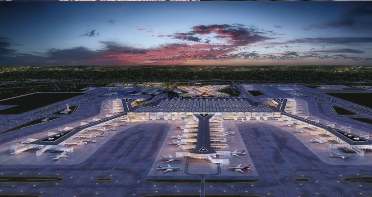 Загальна площа території аеропорту становитиме 76,5 мільйона квадратних метрів. Загалом новий повітряний хаб матиме шість злітно-посадкових смуг, стоянку на 500 повітряних суден, відкритий і закритий паркувальні майданчики на 70 тисяч автомобілів.