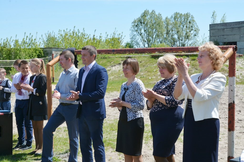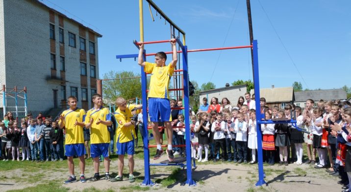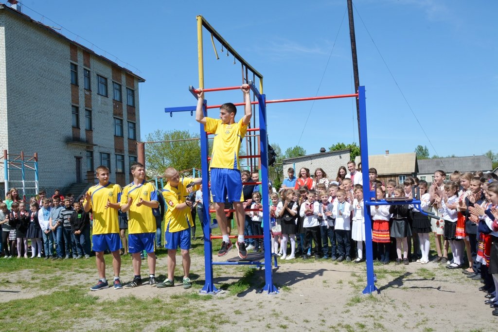 Не гають часу й школярі. Доки хлопці-старшокласники опановують нові турніки, малеча старанно закидає м’ячі в баскетбольні кільця. Дівчата в той час випробовують гойдалку, що встановлена перед школою.