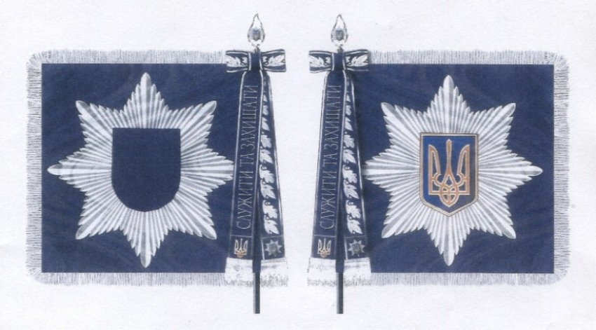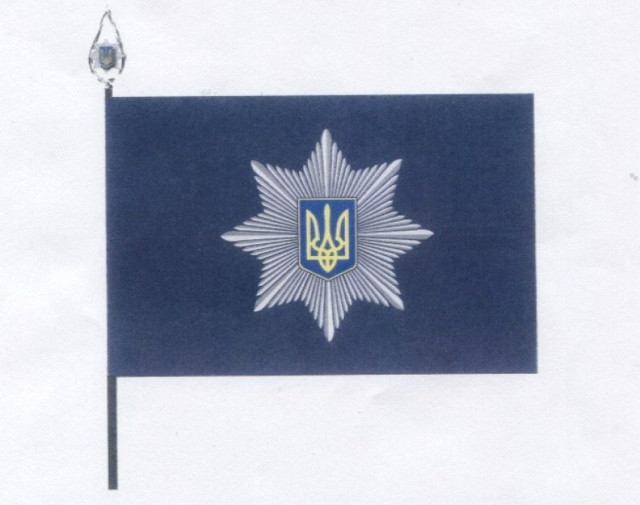 Прапором Національної поліції України є прямокутне полотнище темно-синього кольору в центрі якого розміщено емблему Національної поліції України. Крім того, цим указом затверджено зразок службового прапора територіального органу, науково-дослідницької установи Національної поліції України.