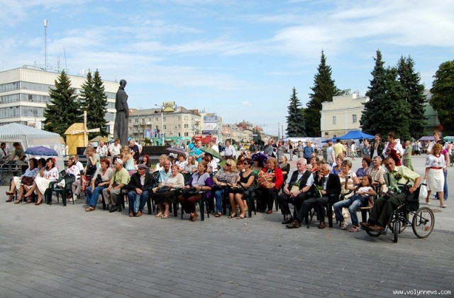 Кілька сотень шанувальників фольклорної та сучасної пісні зібралось на центральній площі Луцька – на Волині вперше відбувався фестиваль «Пісні Великої Волині».