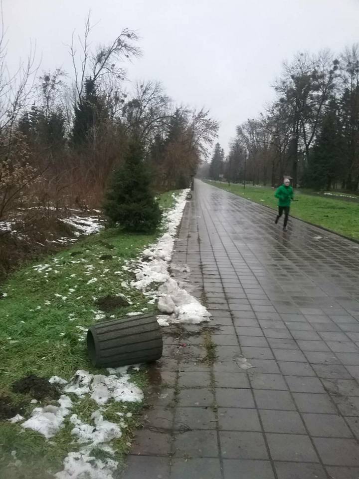 «Сьогодні ГШРівці масово виявили перевернуті та пошкоджені смітнички на всіх алеях парку.