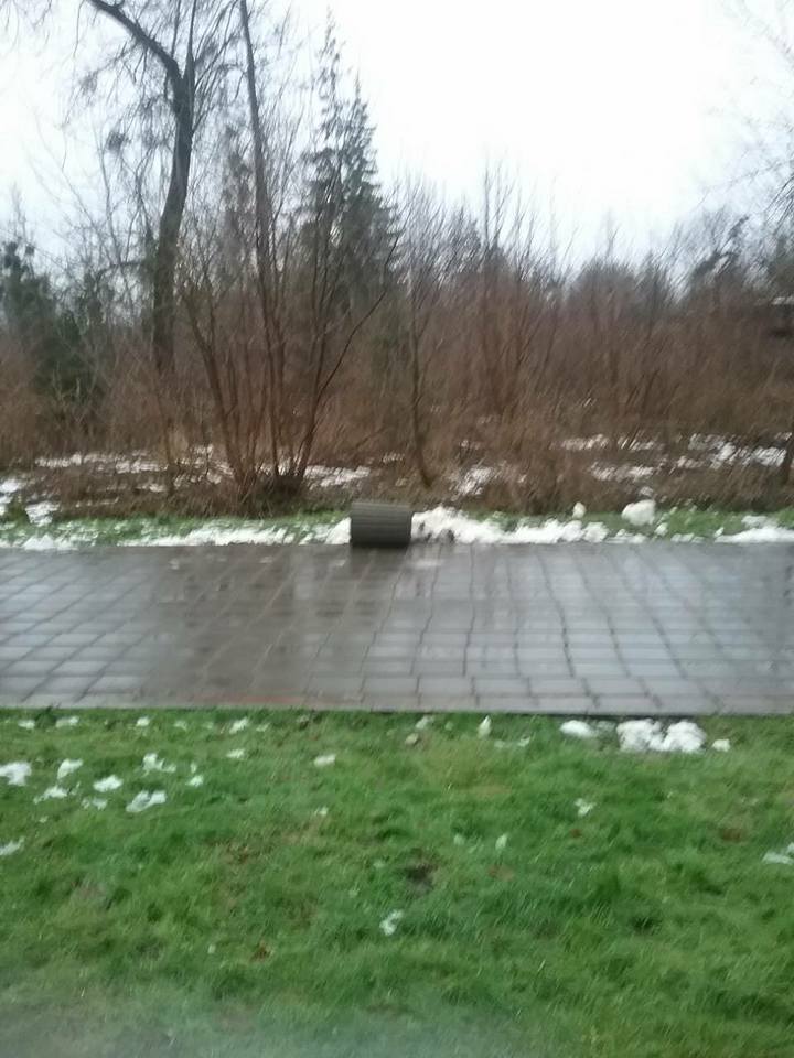 Невідомі у неділю, 24 грудня, в центральному парку Луцька перевернули та пошкодили смітники.