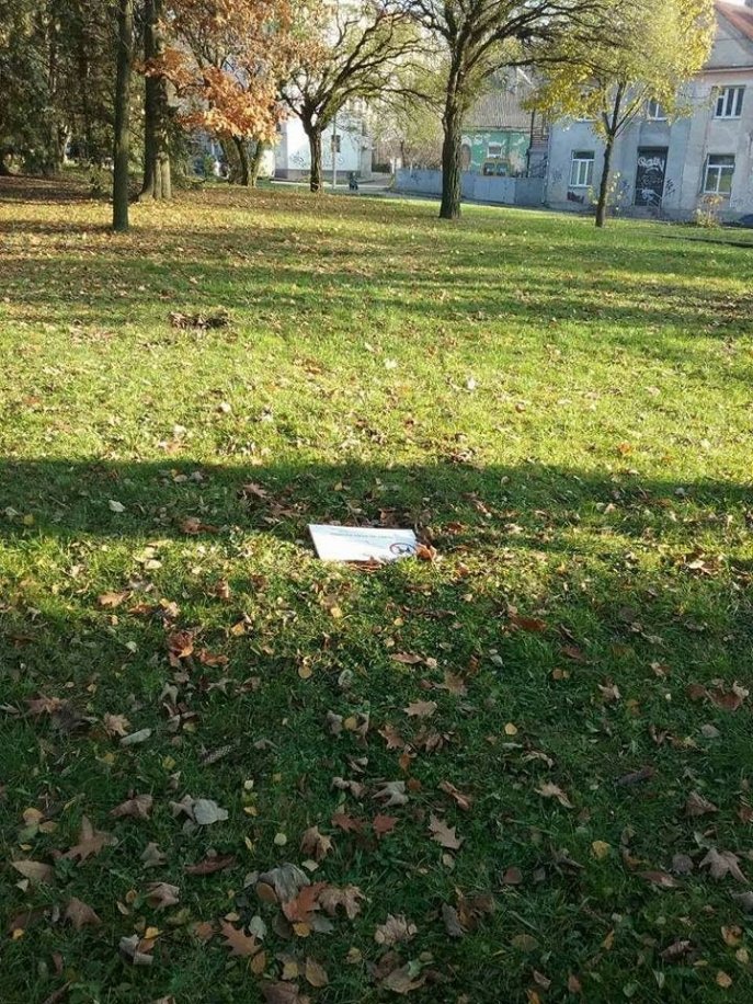 Невідомі пошкодили таблички про заборону вигулу собак, які були встановлені у парку біля Меморіалу Вічної слави в Луцьку.