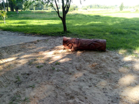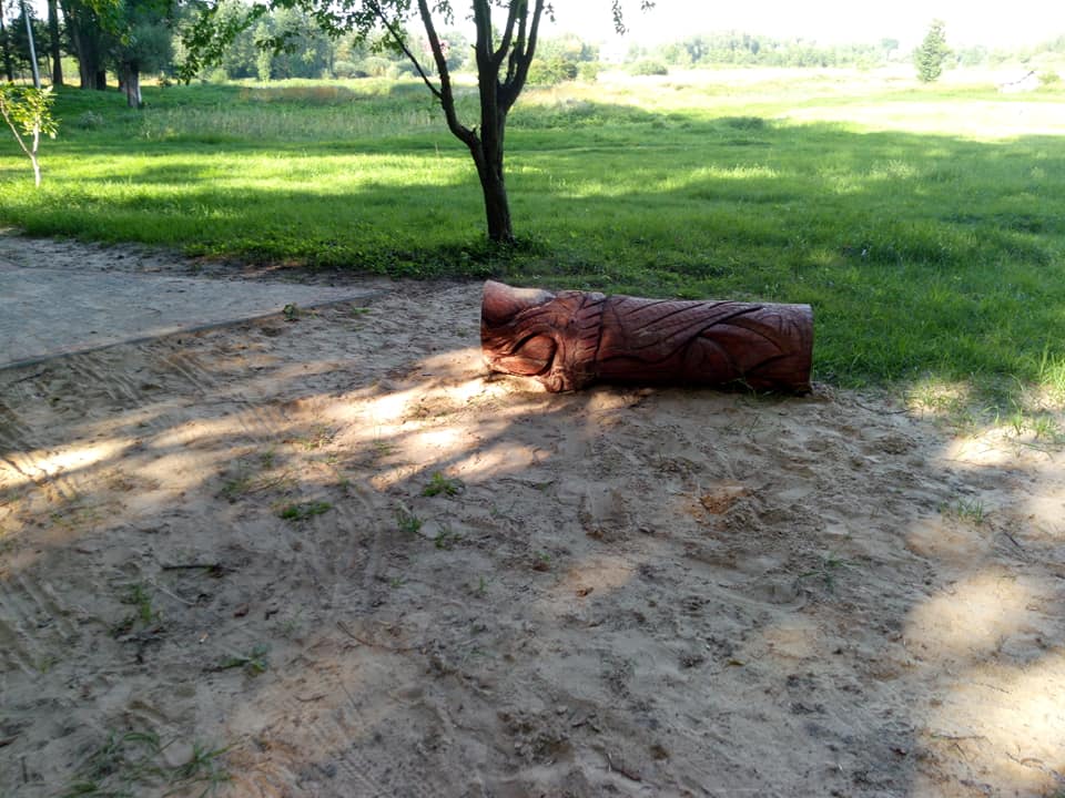 У парку села Заріччя Володимир-Волинського району, де місяць тому відбувся фестиваль «Княжий», невідомі особи перекинули дерев’яну статую і відкотили її вбік.