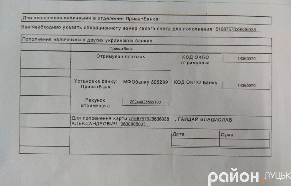 Усі, хто хоче допомогти юнаку, можуть переказати кошти на карту «ПриватБанку» на ім’я Гайдай Владислав Олександрович – 5168 7573 2983 6938.