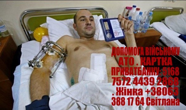 Військовослужбовець АТО Дмитро Романов отримав важкі поранення під час бою із застосуванням легкого і важкого озброєння. Зараз Дмитро пішов на поправку і потребує чергової операції на ампутованій нозі з протезуванням і подальшою реабілітацією.