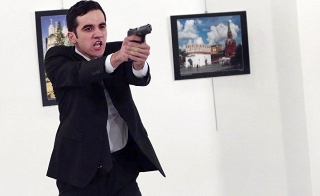 Фотографія зроблена за два дні до вбивства посла. Отже, в день вбивства він був чинним співробітником спецслужб.Турецький поліцейський, який застрелив посла Андрія Карлова, вісім разів забезпечував безпеку Ердогана з моменту спроби державного перевороту в липні цього року. Мерт Алтинташ не входив в команду, яка займалася особистою охороною Ердогана. Він брав участь в операціях із забезпечення безпеки турецького президента.