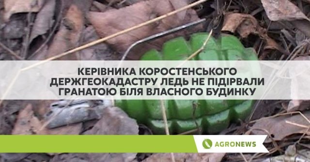 Вчинили замах на життя начальника Держгеокадастру Коростенського району Житомирської області Володимира Тарасенка. Про це повідомив на своїй сторінці в соцмережі "Facebook" Петро Щербина, - інформує Agronews.ua.