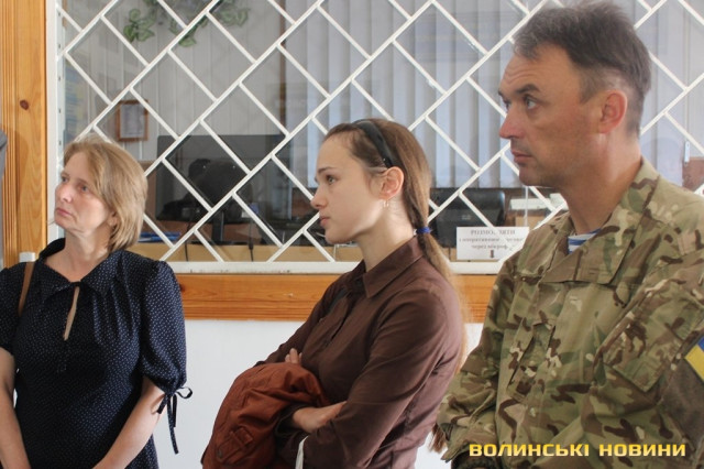 Жінку прийняв виконувач обов’язків обласного військового комісара майор Руслан Яцій. Він зазначив, що керівництво нині перебуває у Володимирі-Волинському, у 51 ОМБ, куди повернулося чимало військових.