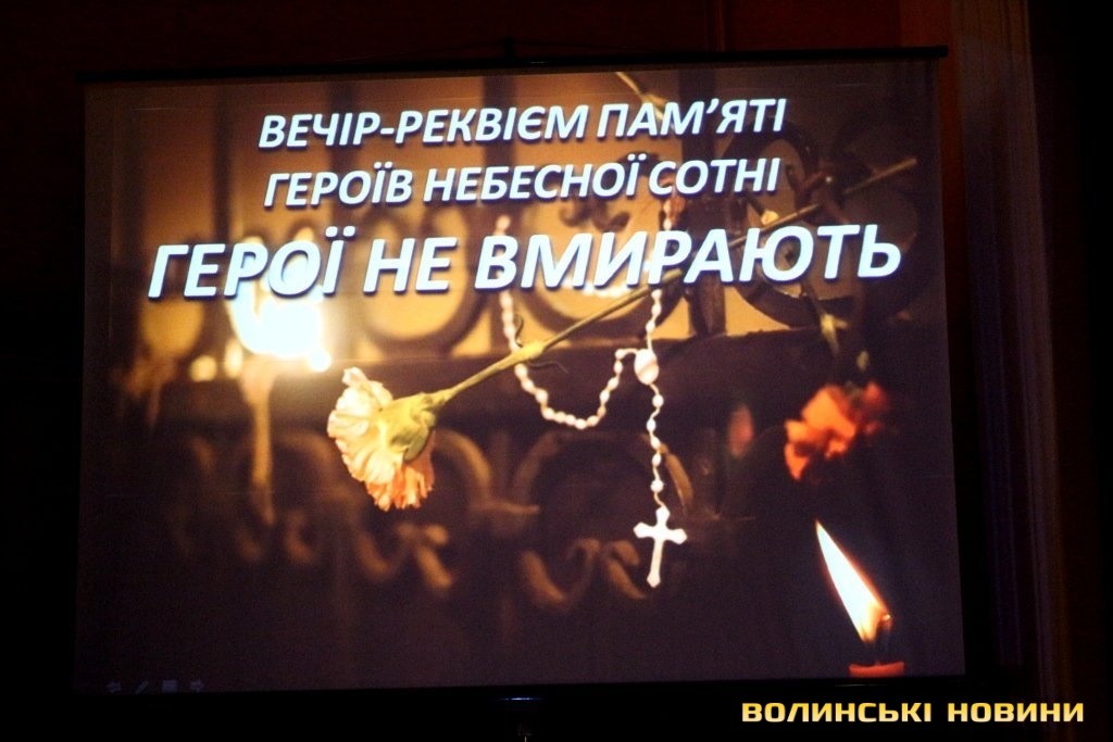Вечір-реквієм пам’яті Героїв Небесної Сотні «Герої не вмирають» відбувся 20 лютого у Палаці культури міста Луцька.