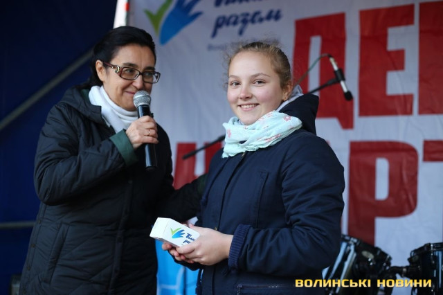 Першими розіграли футбольні м’ячі та флеш-накопичувачі на 32 гігабайти. Наступним на черзі був потужний power-bank (портативний зарядний пристрій). Він дістався місцевому жителю Миколі Мартинюку.