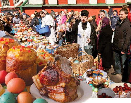 Після цього священик хрестом відчиняв двері церкви на знак того, що Христове Воскресіння відчинило нам двері до неба. І вже потім освячувалися паски, крашанки і все, що люди принесли в кошиках. Цікаво, що великодній кошик досі має регіональні особливості: крім пасок, у Центральній Україні до нього клали крашанки у шкарлупі, а на Галичині їх чистили. До кошика обов’язково клали масло. І на Галичині, і в Центральній Україні обов’язковим було сир, запечене сало, м’ясо. Ще випікали багато солодощів, але їх не святили, так само, як не брали до церкви ні вина, ні горілки.