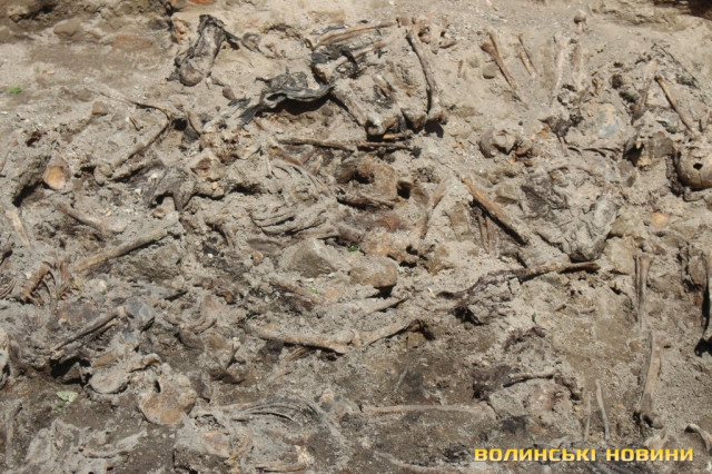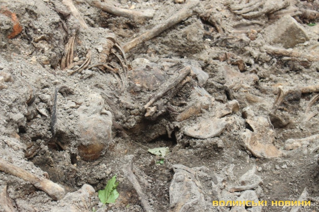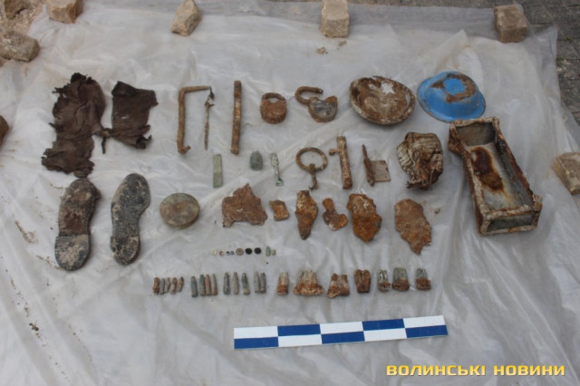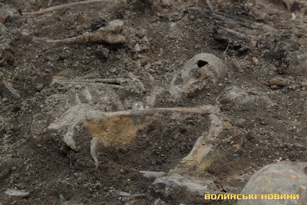 Ярослав Онищук додав, що разом із останками вдалося віднайти боєкомплекти, зокрема уламки від розірваного снаряду, патрони, гільзи, замки, посуд, рештки взуття та одягу, наприклад ґудзики.Присутній на прес-конференції виконувач повноважень Луцького міського голови Ігор Поліщук, своєю чергою, поінформував, що для здійснення ексгумації та належного перепоховання решток із міського бюджету з його ініціативи виділили 100 тисяч гривень.Попередньо перепоховати останки планують на території Монастиря бригідок, біля стіни пам’яті розстріляних в’язнів Луцької тюрми.