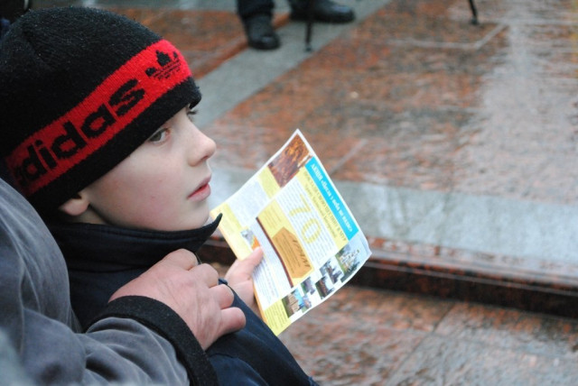 На мітинг прийшли понад 100 людей, серед яких і діти. Однак через дощ і град, які не забарилися, частина людей покинула захід.
