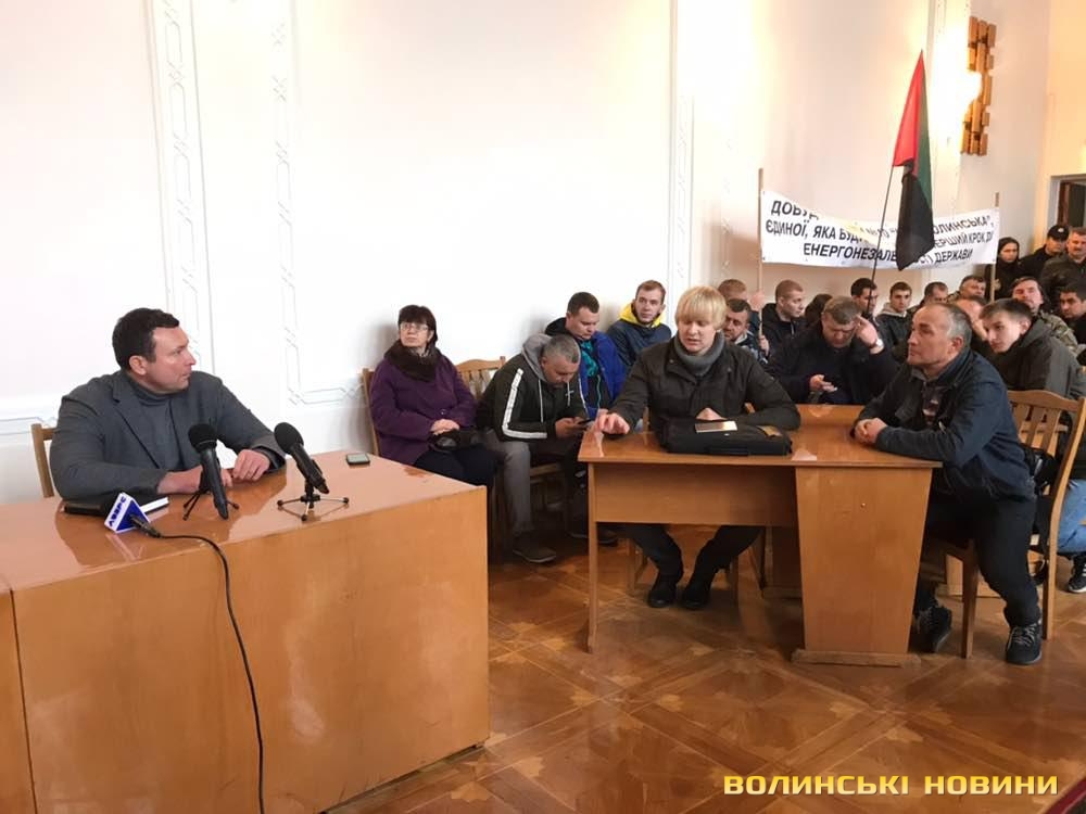 Урешті до шахтарів вийшов радник голови облдержадміністрації Олександр Киричук.Як розповів йому голова профспілки Василь Прадід, гірники хочуть, аби голова ОДА разом із ініціативною групою поїхав із ними до Києва, щоби вирішити складні питання шахтарів, зокрема щодо виплати зарплати і дофінансування будівництва шахти 10 «Нововолинська».