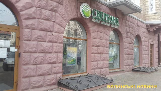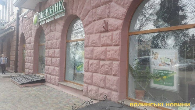 Нагадаємо, у Луцьку за ніч побили вікна трьох банків: Сбербанк, Альфа-Банк та Промінвестбанк.