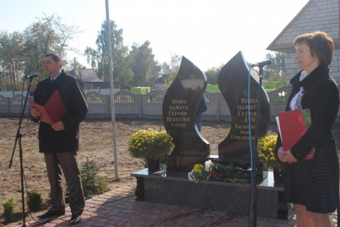 Вони нагадали, що загиблий Герой-односелець Іван Пасевич був працелюбним, відповідальним, люблячим і вірним сином, братом, чоловіком і татом. Він не вагаючись пішов боронити рідну землі від загарбників і загинув, виконавши свій громадянський та християнський обов’язок. Хвилиною мовчання вшанували земляка і Небесну сотню. Після Гімну України священики соборно освятили пам’ятний знак,а