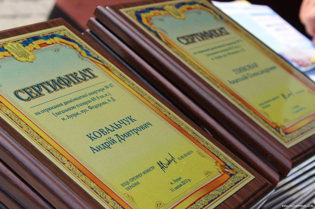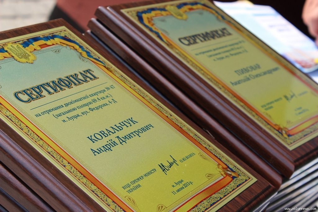 Віце-прем’єр-міністр України Олександр Вілкул та голова Волинської ОДА Борис Клімчук вручили сертифікати та ключі від нових помешкань власникам квартир у будинку, зведеному ПрАТ «Луцький домобудівельний комбінат» в межах реалізації Держпрограми «Доступне житло».