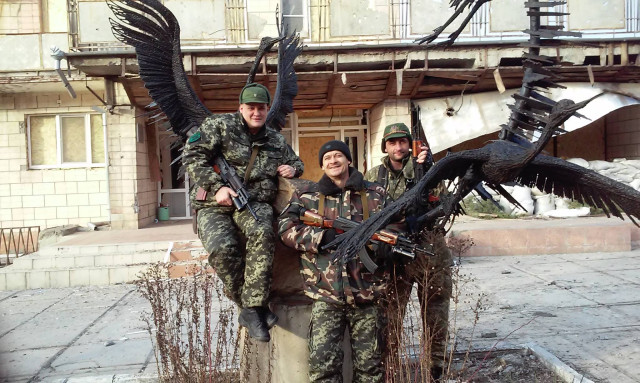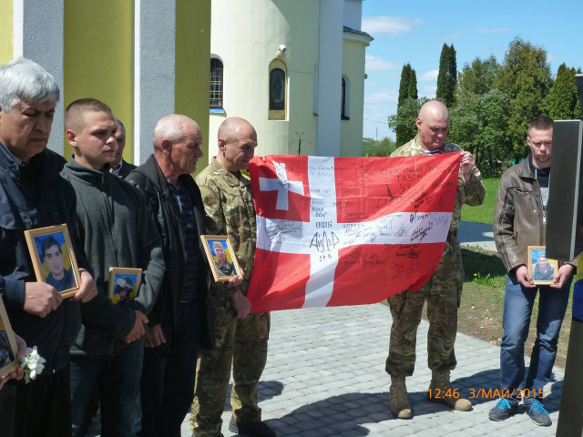 «Тоді ще призовний вік не підняли – брали до 45 років, тому в ЗСУ нас не взяли, мовляв, застарі. Ми пішли добровольцями в новосформований батальйон «Айдар», у другу роту «Захід», кістяк якої становили волиняни. Наша рота одразу отримала назву «Динозаври» - через вікові показники. Був серед нас художник, який намалював зображення скелета голови динозавра, яке ми чіпляли на прапор «Айдара». Сепаратисти потім нас впізнавали і навіть побоювалися».