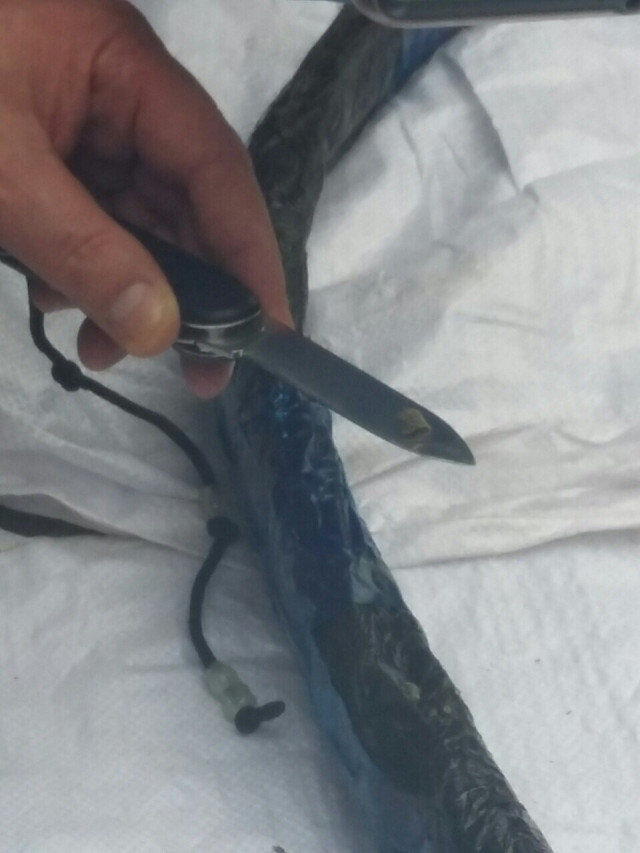 Під час проведення спільного огляду транспортного засобу та за наявною попередньою інформацією прикордонників, був виведений із загального потоку автомобіль марки «Пежо». В задньому колесі якого була виявлена сіро-зелена речовина (попередньо згідно експрес аналізу –маріхуанна) вагою більш ніж 200 грам. А допоміг у цьому прикордонникам службовий собака «Барон».