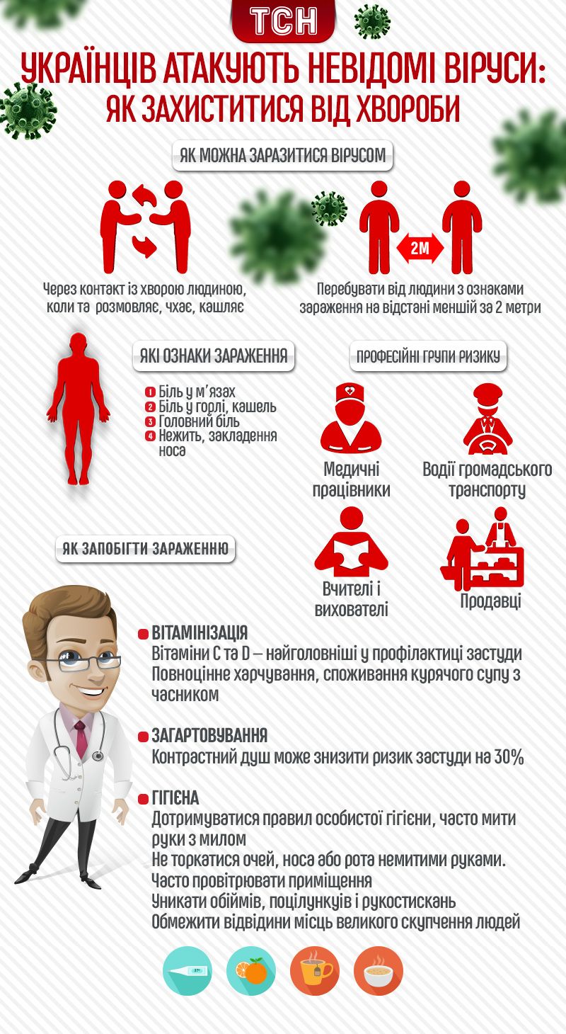 Нерідкісними в Україні є й піки захворюваності на ГРВІ. На інфографіці вище наведені загальні поради з профілактики захворювання вірусами.
