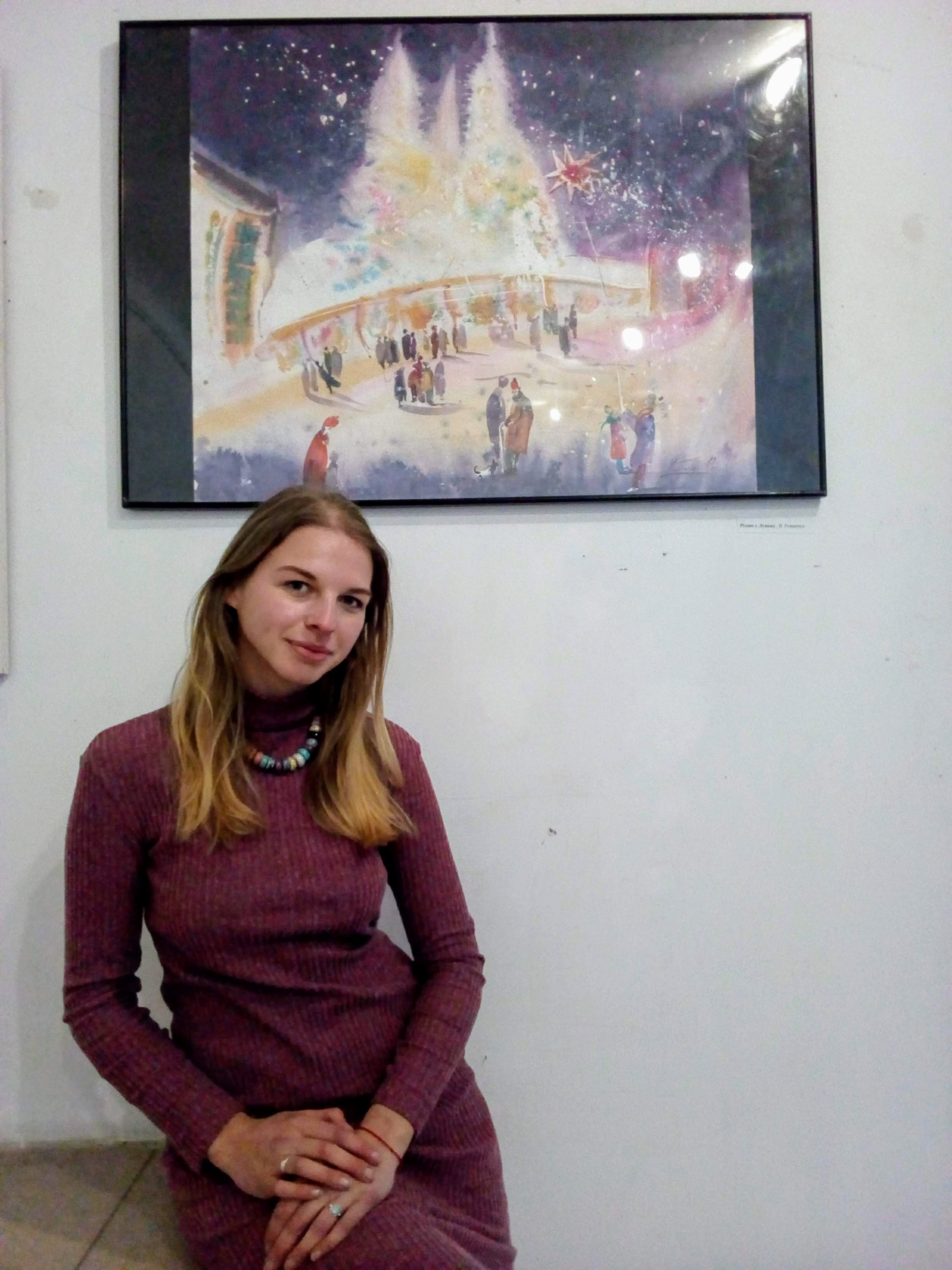 У житті молодої художниці Вікторії Романчук різдвяний період завжди був особливо багатим на події. Свій день народження вона теж відсвяткувала напередодні Нового року: «У мене в дитинстві був такий ритуал: я півроку збирала гроші, потім на Різдво купувала всім подарунки. Це час подарунків і див, час зробити рідним приємне, планувати майбутнє. Я впевнена, що плани і цілі на рік збуваються, ще й з надлишком!». Представлена нею акварель про загадковість Різдвяної ночі, що несе людям світло нового життя і духовного піднесення, написана нещодавно під враженням від фотороботи Віктора Чухрая.