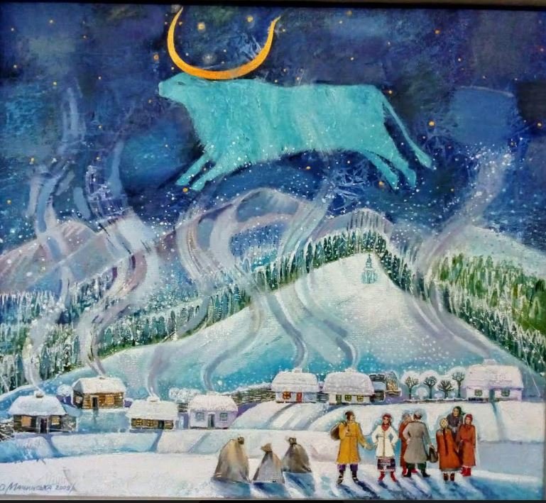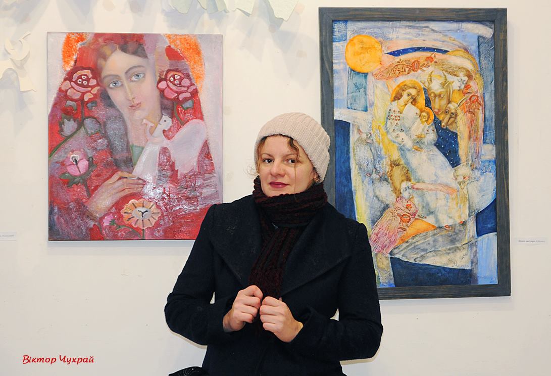 В експозиції «Різдвяної містерії» презентовано кілька творів художниці на тему свята. Картина «Святвечір» особлива для авторки – в ній описана родинна різдвяна традиція: «На ній зображено горщик з кутею і ложки-душечки. Завжди по вечері мама забирає кутю на кухню і на ніч лишає ложки. Як на ранок вони будуть перевернуті, значить приходили душечки їсти. Отака байка!».
