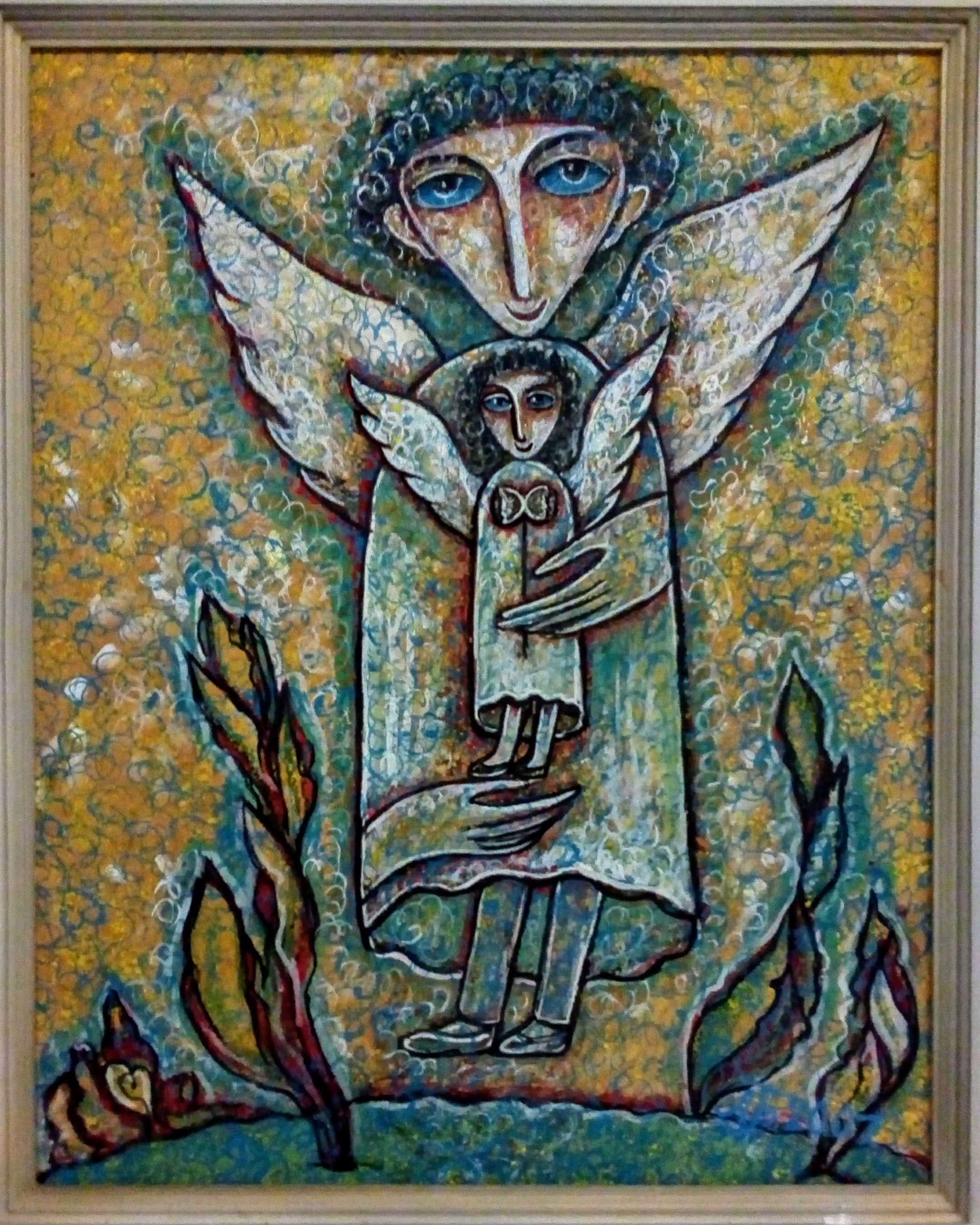 «Різдво – це таїнство. Треба знайти в собі ту ангельську сутність, яка дає змогу піднятися над землею і злитися з небом», – на картині знаної волинської мисткині Олени Бурдаш зображені два ангели, які піднеслися над землею. Їхня духовна опіка – як невидимі, але сильні руки, які підтримують нас в час випробувань.