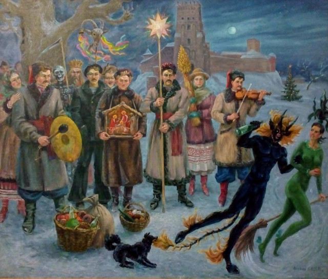 Тема українських обрядів і звичаїв відзначення Різдва – одна з улюблених у творчості заслуженого художника України Леоніда Литвина, який присвятив їй багато своїх робіт. Шанувальникам його творчості відомі колоритні великоформатні полотна, які показують його бачення усієї низки зимових свят – від різдвяних вертепів до Водохреща. Одна з них «Миру вам, щастя!» зараз експонується на Всеукраїнській Різдвяній виставці в Києві.