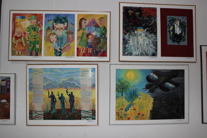 Під час відкриття виставки учениця дитячої художньої школи Вікторія Валецька зачитала власний вірш, присвячений подіям на сході Україні, який вона зобразила й на власній картині.