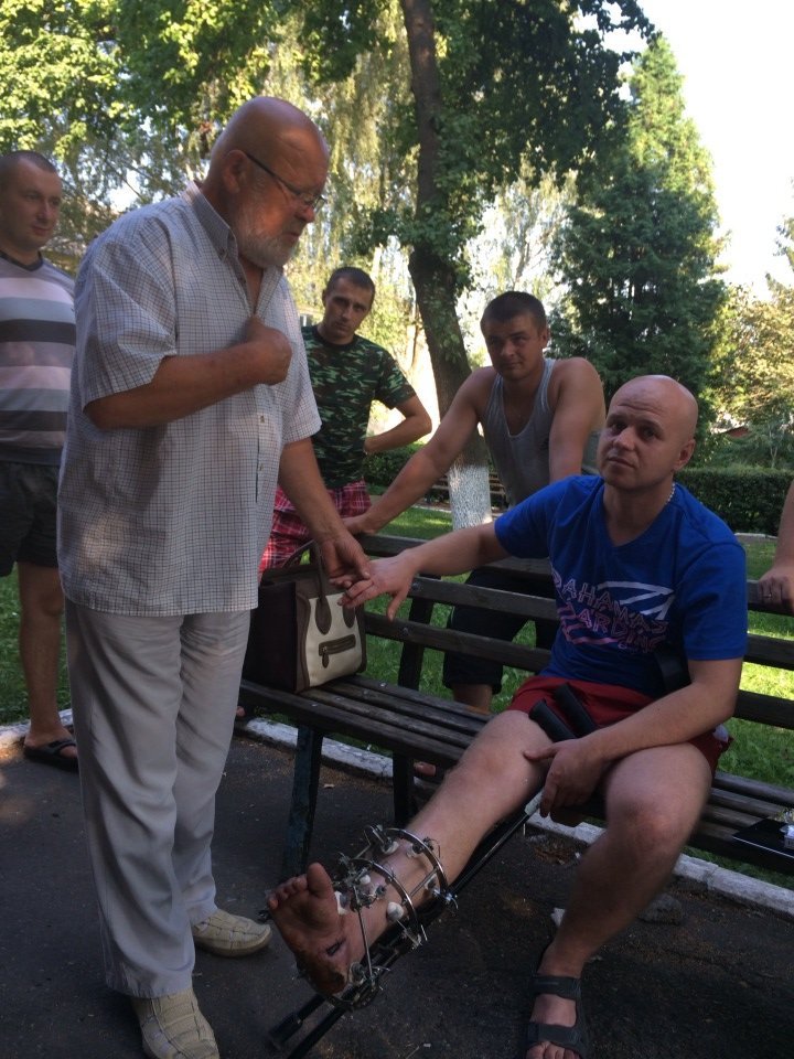 До шпиталю як волонтер завітав Александр Харченко, доктор наук, академік, медик, який запропонував нашим пораненим програму ПОЗБАВЛЕННЯ БОЛЮ та спазму. Приймав хлопців прямо на вулиці. Результати просто вражають», - пише Наталія Соколова.