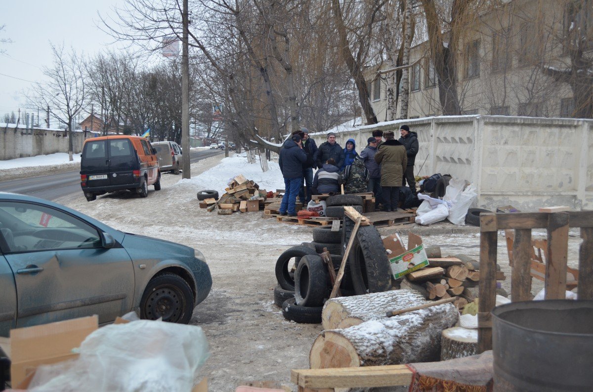 «На часі. На Лідавський сьогодні розбарикадували головні виїзні ворота частини. Люди зголосилися на це, можливо, і дійсно так краще. Все решта залишається в силі, як завжди, великий брак людей і дров). Людей, трішки більш адекватних, ніж були замічені в порушенні порядку.