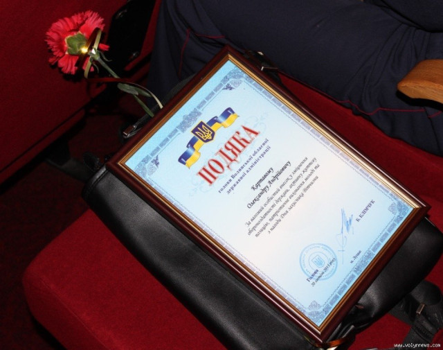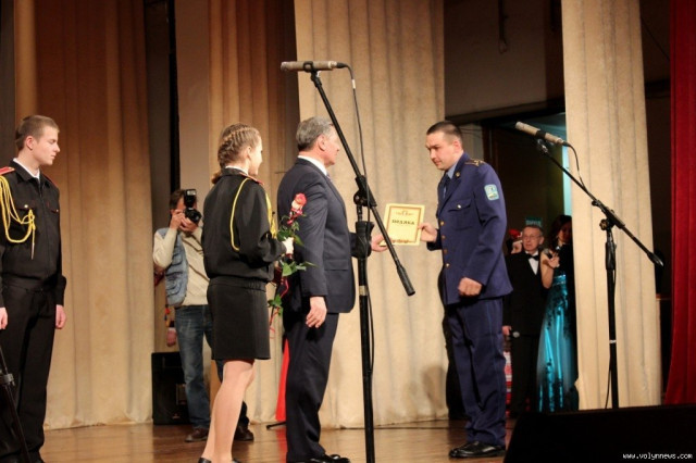 Луцький мер Микола Романюк привітав ветеранів, побажавши їм здоров’я, щастя й удачі, та вручив почесну грамоти за активну життєву позицію, дієву громадську та ветеранську роботу, патріотичне виховання молодого покоління голові первинної ветеранської організації ВАТ «Волиньобленерго» Євгену Гринюку. За сумлінне виконання службових обов’язків, високу професійну майстерність, ваговий внесок у забезпечення обороноздатності держави подяку луцького міського голови оголосили капітану Олексію Бондаренку.