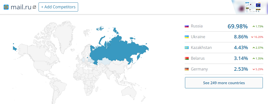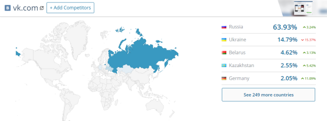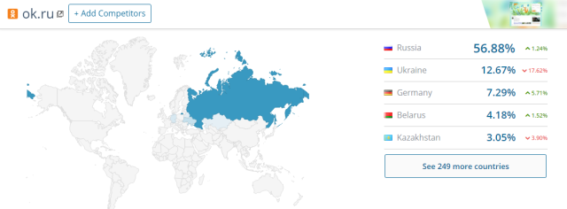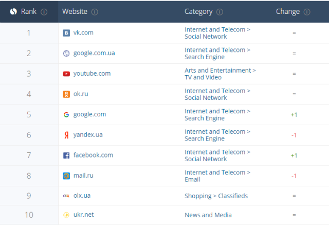 При цьому місячний трафік, що надходить з України, на заблокованих ресурсах знизився.Зокрема, число відвідувань мережі «ВКонтакте» з Уанету зменшилася на 15.37%. У той же час на 11.09% збільшився трафік з Німеччини.«Однокласники» втратили 17.62% українського трафіку. При цьому в загальному рейтингу ресурс залишився на колишній 4-ій позиції.Трафік Yandex.ua знизився в цілому на 12.24%. Однак, якщо число відвідувань з України зменшилося на 15.84%, то кількість відвідувань з США збільшилася на 246%, а з Нідерландів на 126,6%. У загальному рейтингу Yandex.ua спустився з 5-ї на 6-у позицію.Просів на 16.20% і український трафік Mail.Ru. Позиція ресурсу в рейтингу знизилася з 7-ої на 8-у сходинку.