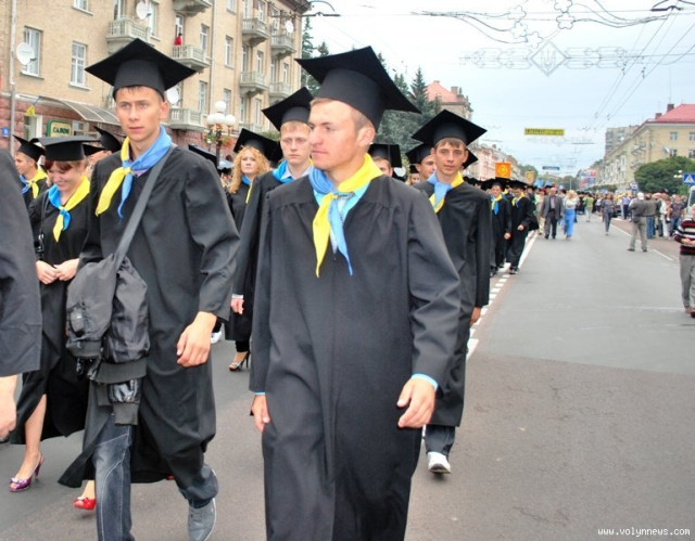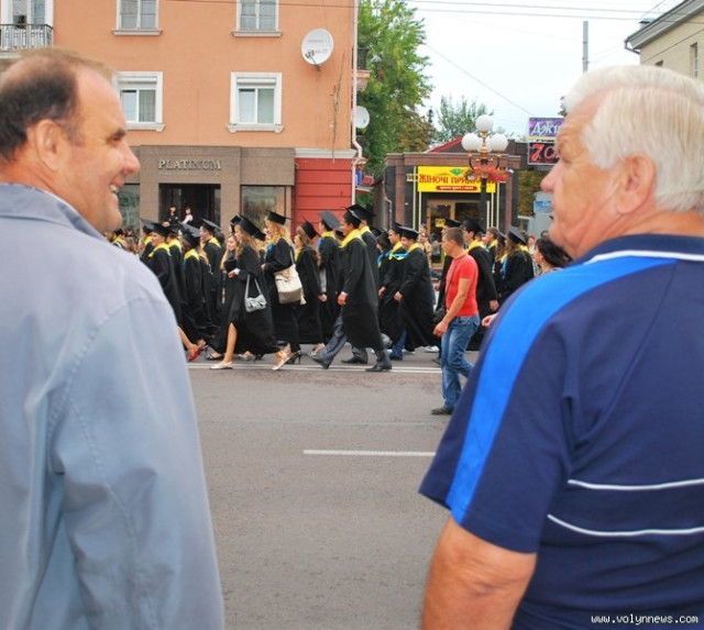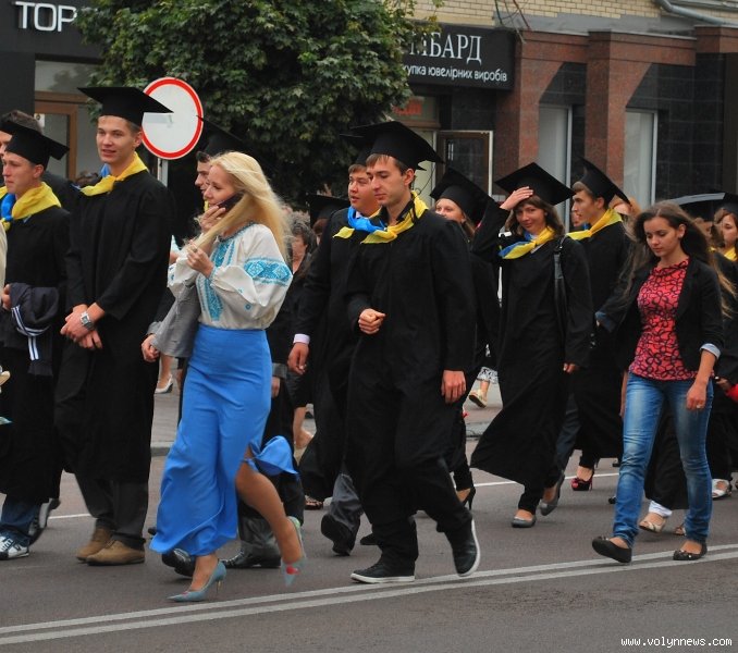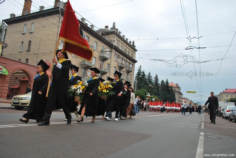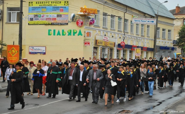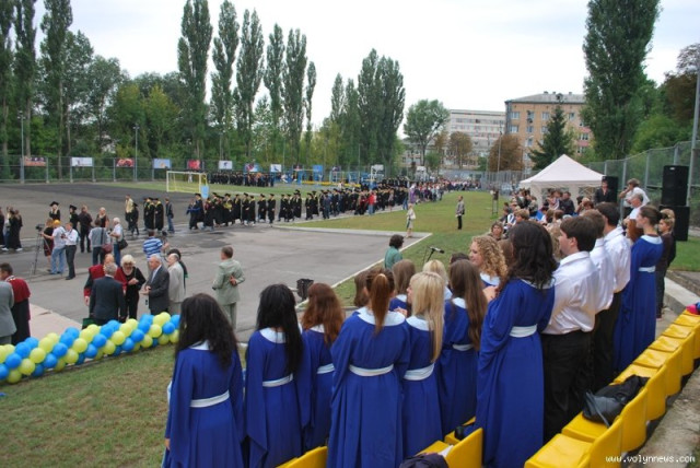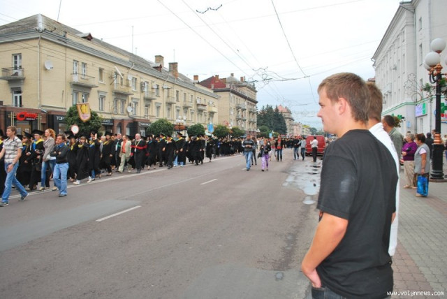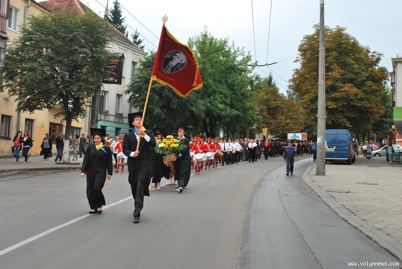 Опісля колона за участю представників влади, церковних діячів, викладачів, студентів та їхніх батьків рушила від головного корпусу ВНУ проспектом Волі, Винниченка, Перемоги, Ярощука та прибула на стадіон університету.