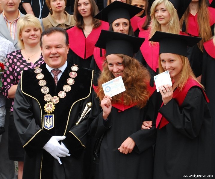 Власникам «червоних дипломів» пластиковий документ про вищу освіту вручав особисто ректор університету Ігор Коцан та голова обласної державної адміністрації Борис Клімчук.