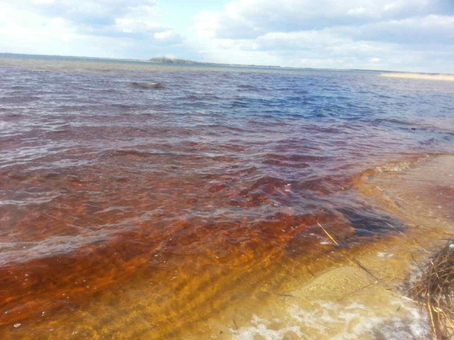 Фото озера Світязь з невластивим для водойми кольором водизробили жителі села Світязь, пише Район.Шацьк.