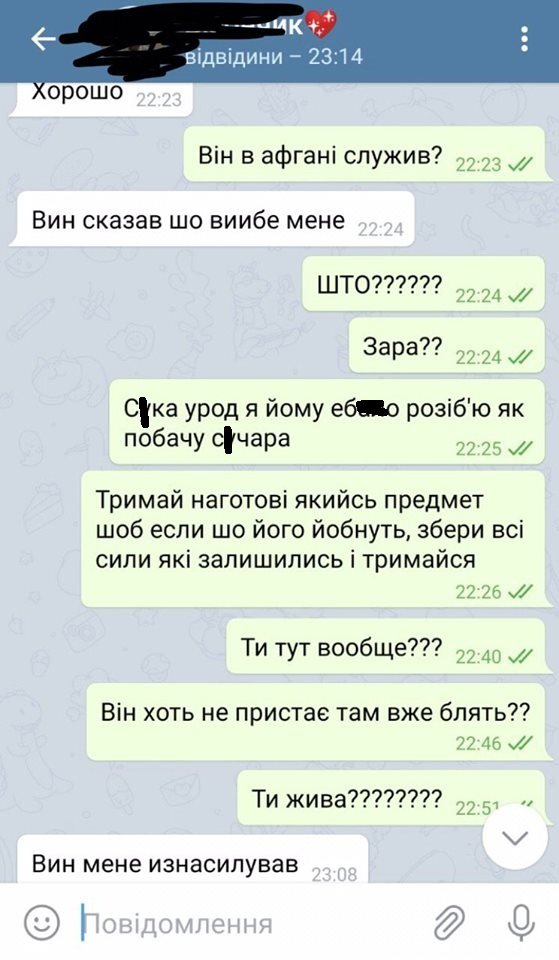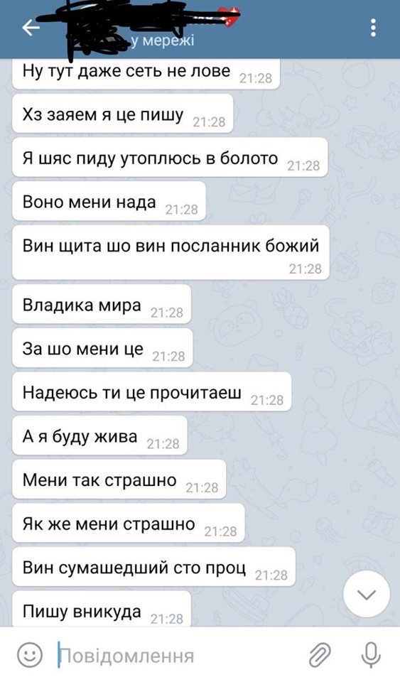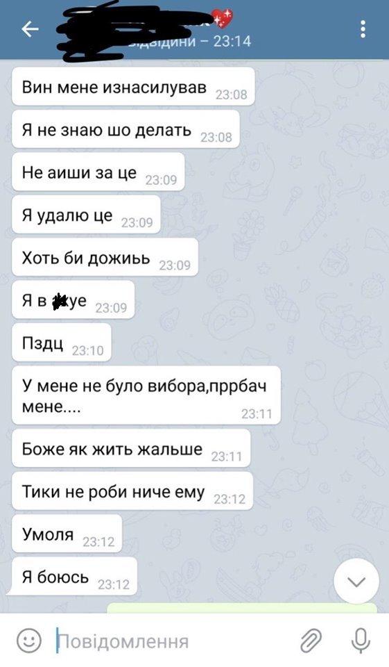 Шо за бред?Її ізнасідували,вона пише-вибач в мене не було вибора...як ніби в неї нокію 3310 вкрали