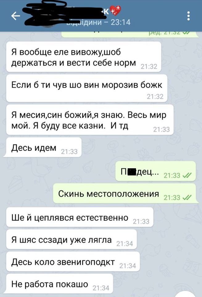 Та при чому сильніші чи слабші,проти лома нет прийома. Суть в тому шо вони собі переписуються дальше ніби це не шось супер страшне сталось. Вона должна була написати-ЖДИ МЕНЕ ТАМ І ТАМ З МЄНТАМИ І ПОРВИ ЙОГО НА МЄЛКІ КУСОЧКІ