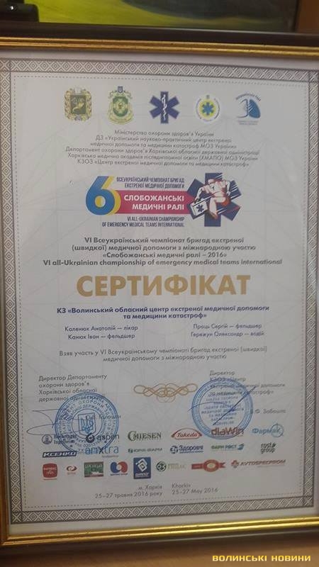У Харкові відбувся шостий всеукраїнський чемпіонат бригад екстреної медичної допомоги «Слобожанські медичні ралі - 2016». Згідно з результатами змагання волинський водій карети швидкої допомоги – серед п’яти кращих майстрів своєї справи в Україні.