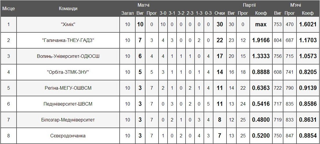 Дві домашні поразки відтіснили лучанок з другого на третє місце. А «Хімік» безкомпромісно тримає лідерство, вигравши усі партії у цьому сезоні.