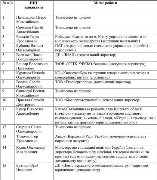 Довідково. Члени комісії вищого корпусу категорії державних службовців категорії А національного агентства України з питань державної служби: Анненкова Наталія Валентинівна – Керівник Головного департаменту регіональної та кадрової політики Адміністрації Президента України; Риженко Олександр Володимирович – Голова Державного агентства з питань електронного урядування; Ващенко Костянтин Олександрович – Голова Нацдержслужби; Корчак Наталія Миколаївна – Голова Національного агентства з питань запобігання корупції; Холоднюк Зеновій Васильович – Голова ДСА; Нікітіна Тетяна Василівна –член Центрального комітету Профспілки працівників державних установ України, керівник міжнародного проекту з профспілкою FackforbundetST (Швеція) «Розвиток державного сектору в Україні»; Колишко Родіон Анатолійович – заступник генерального директора Федерації роботодавців України; Коліушко Ігор Борисович – голова правління громадської організації «Центр політико – правових реформ»; Руденко Ольга Мстиславівна – професор кафедри публічного управління та менеджменту організацій Чернігівського національного технологічного університету; Янчук Артем Олександрович – заступник директора Інституту законодавства Верховної ради України.Купрій Володимир Олександрович – виконавчий директор благодійного фонду «Творчий центр ТЦК».