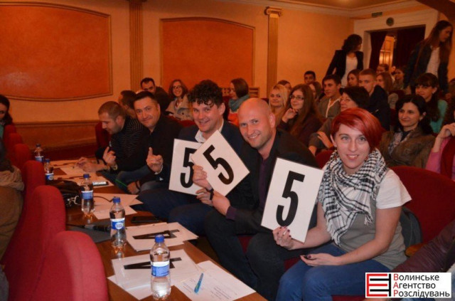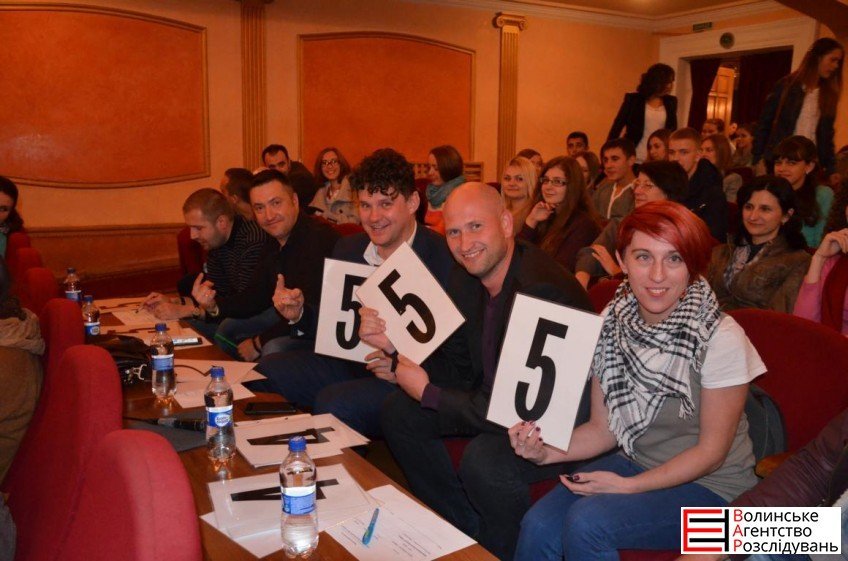 Оцінювали жартівливий батл голова волонтерської організації «Волинь SOS»Тетяна Должко, очільник ГО «Автомайдан України» Андрій Попик, начальник департаменту інфраструктури та туризму ОДА Іван Мирка, фотограф Павло Березюк та журналіст і волонтер Мирослав Ватащук.