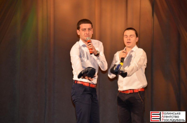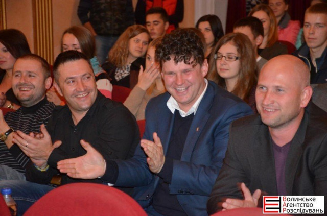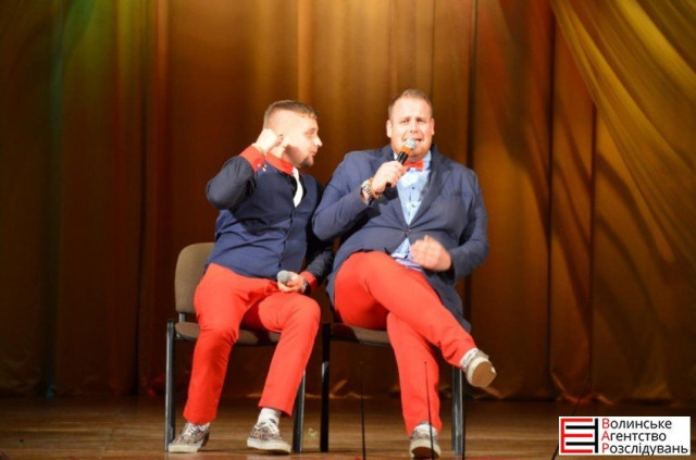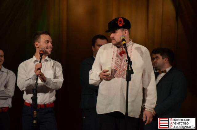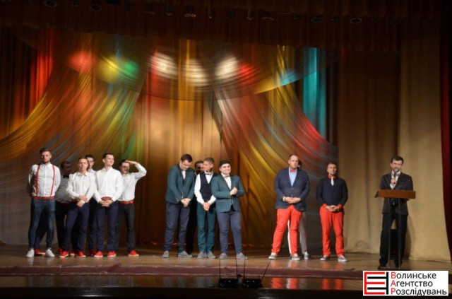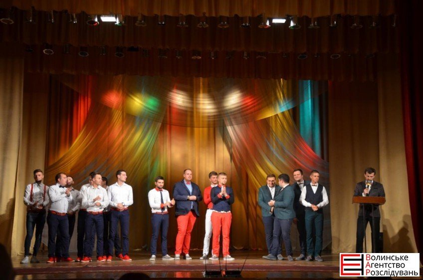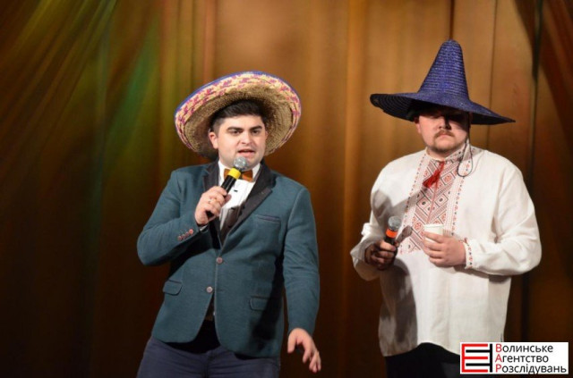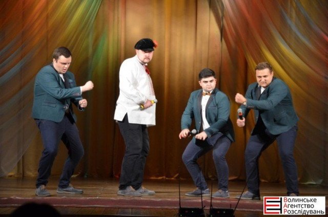 КВНщики із «Замку Любарта» повеселили глядачів детальним описом виготовлення цукерок «Рачки» та сценкою з букетом нареченої на весіллі. А ще вони розповіли гостям вечора, що українські журавлі, пролітаючи над територією сусідньої федерації, кличуть зовсім не «курли-курли», а добре відоме «ла-ла-ла-ла-ла». Зал буквально вибухнув оплесками, коли на гумористичній арені з’явився «Віталій Кварцяний», який погрожував стрибком із балкону. «Нас запросили сюди веселити людей»,- виправдовувався капітан команди. Проте «Кварцяний» нагадав, що ФК «Волинь» ось уже 50 років чудово справляється із цим завданням. Випив за здоров’я гостей і голова села Великі Пузички, що у Мексиці.