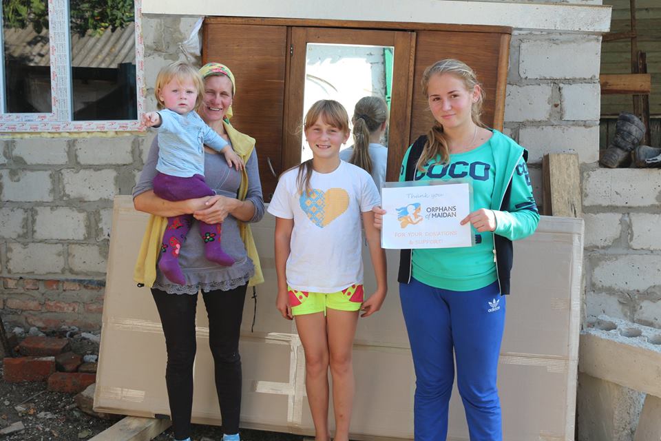 «Потроху вдається підтримувати родину зі всіх куточків світу. Дякуємо організації OrphanChildrenofMaidan & ATO із штату Коннектикут (США) за надану фінансову допомогу, яка цій родині в теперішній ситуації дуже потрібна. Зараз триває ремонт хати (будівництво веранди) та відбудова літньої кухня, яка згоріла влітку. Дякуємо родині YuliyaSushynska та її подрузі Віці Понджолі з Італії за передані кошти до яких ми додали частину коштів від OxanaKouchmykі - придбали металеві вхідні двері для літньої кухні.Дякуємо Наталія Водько, Oxana Kouchmyk та іншим благодійникам за одяг та памперси для найменьшенького. І насамкінець, дякуємо Штаб Луцьк Автомайдан України, а самеGennady Khomutinkin за допомогу з доїздом і доставкою дверей до родини», - йдеться у повідомленні.
