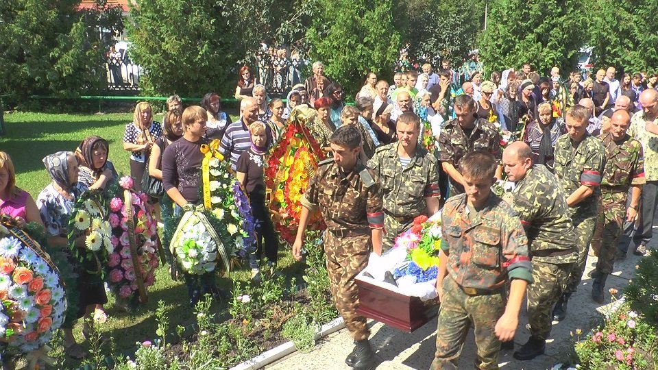 Попрощатись з молодим героєм прийшли рідні, друзі, мешканці міста. Сліз не стримували ні жінки, ні чоловіки. Від імені міської влади слова співчуття родині загиблого висловили перший заступник міського голови, секретар ради Володимир Рожелюк та заступник міського голови Едуард Савік.